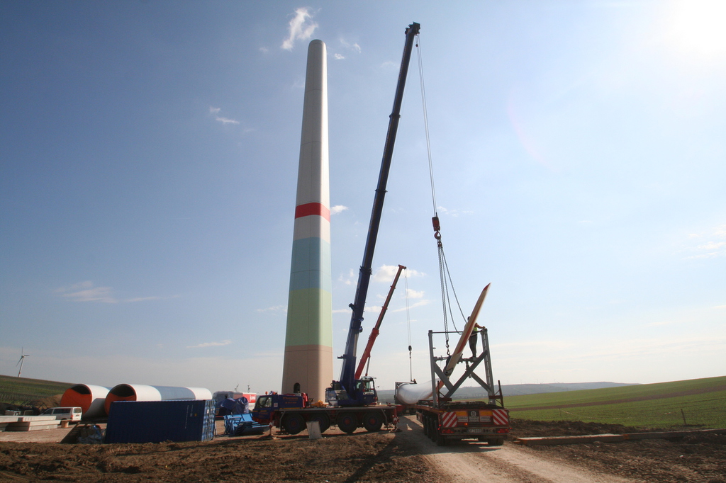 Montage von Betonfertigteilen / Arbeiten im Windpark